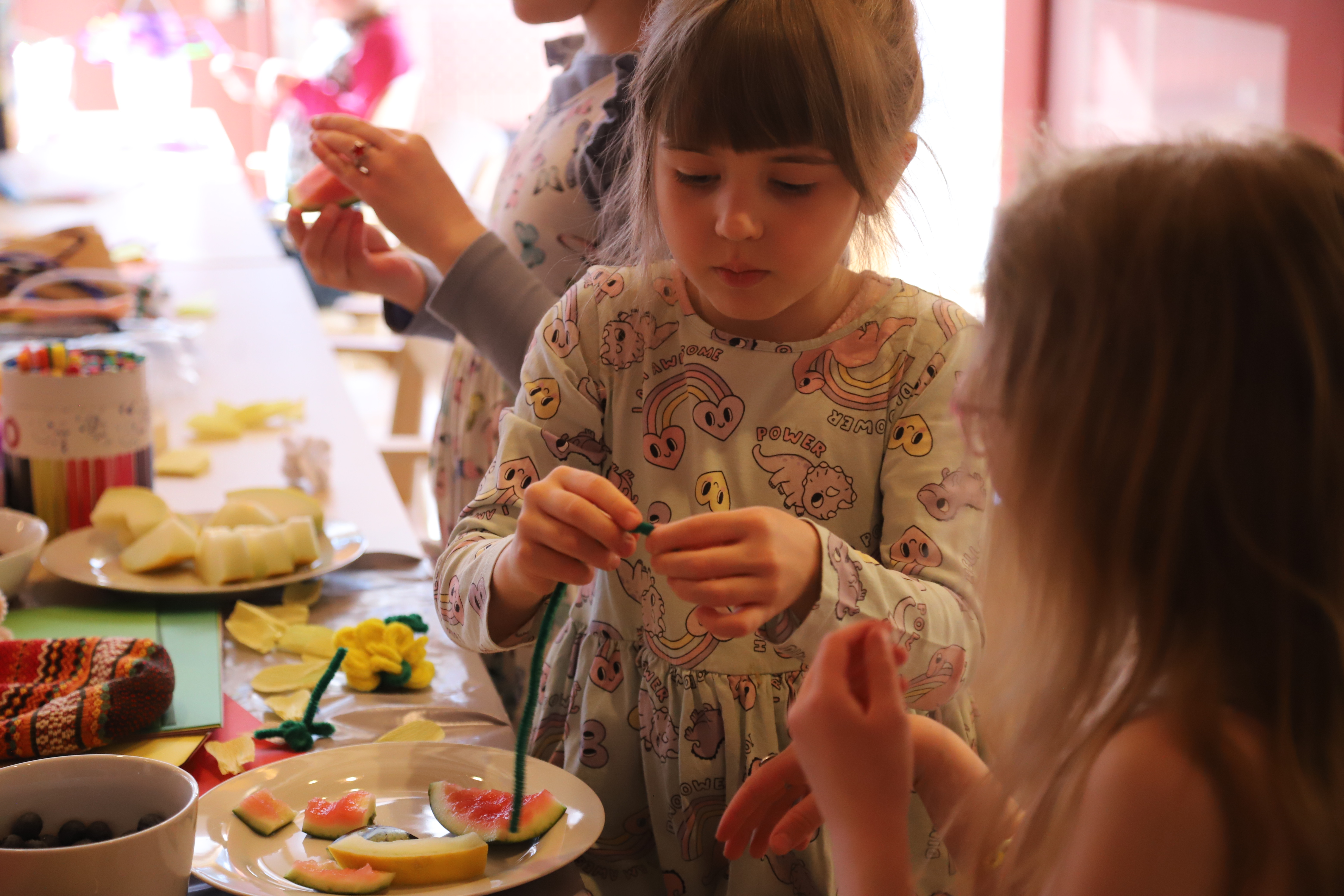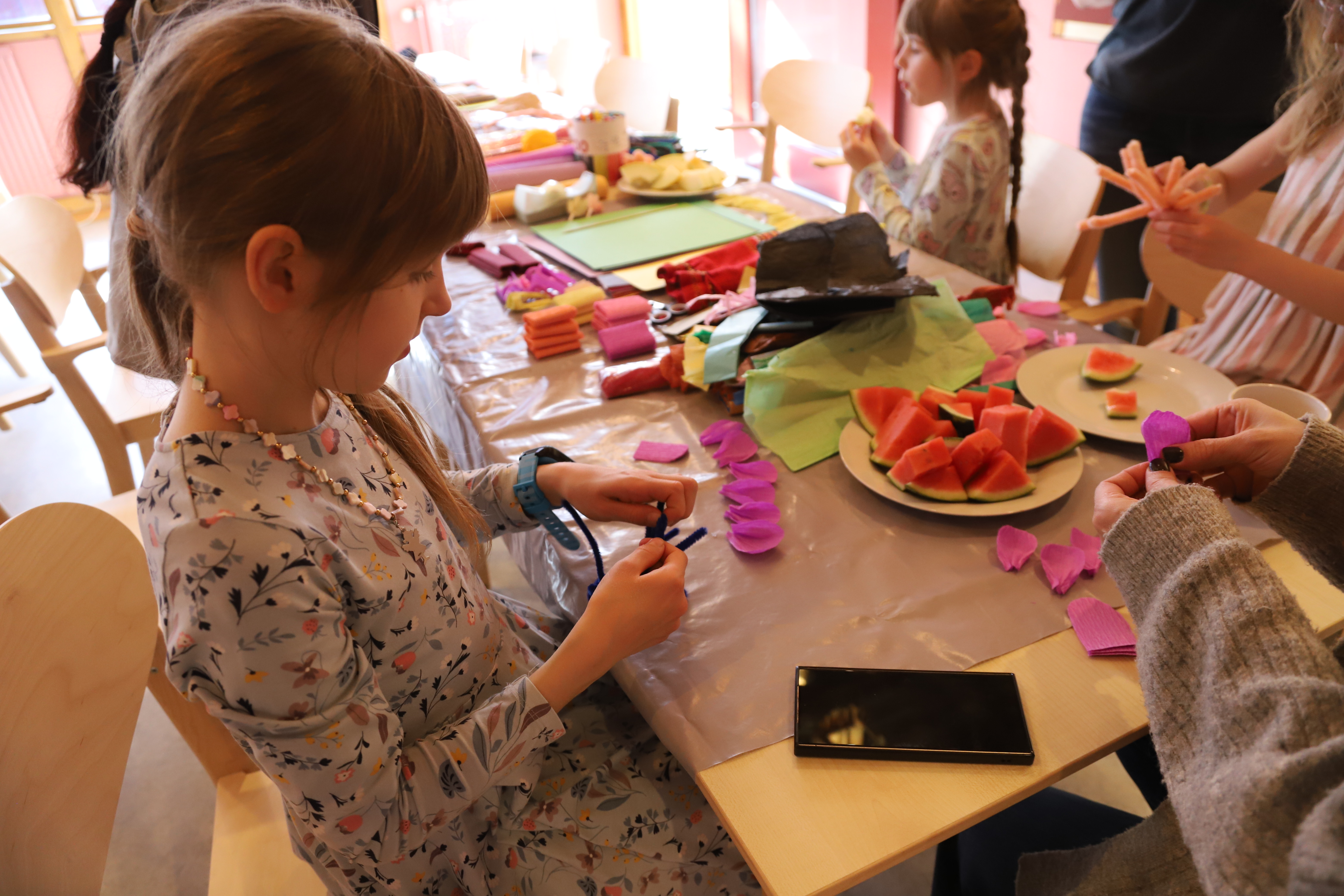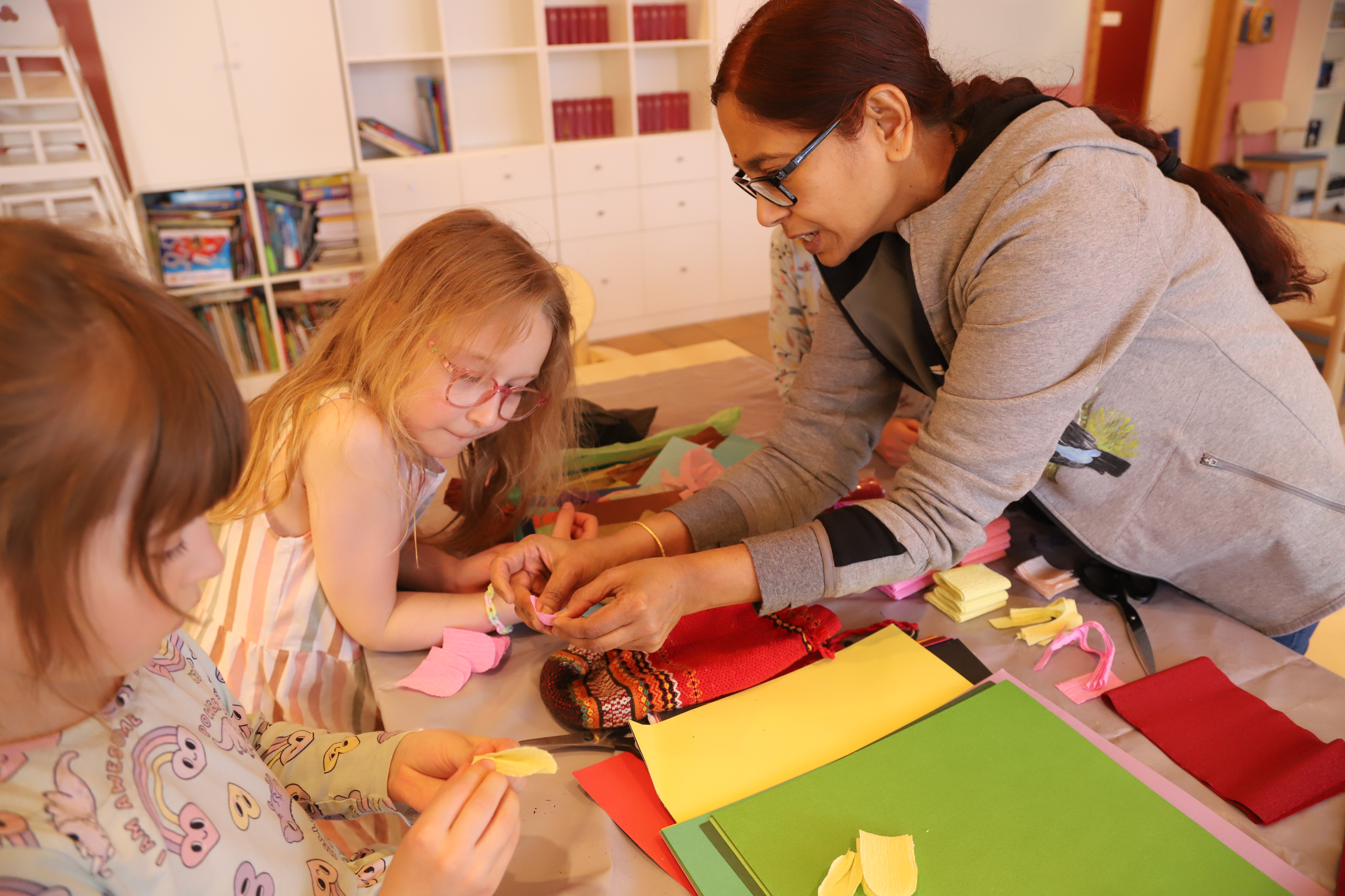 Na naszym dzisiejszym spotkaniu królowały kolory! Wiosna już za oknem, więc postanowiliśmy ją nieco przyspieszyć robiąc kolorowe kwiaty z papieru, z pomocą naszej specjalistki. Były też kolorowe zagadki i wiele zabaw.