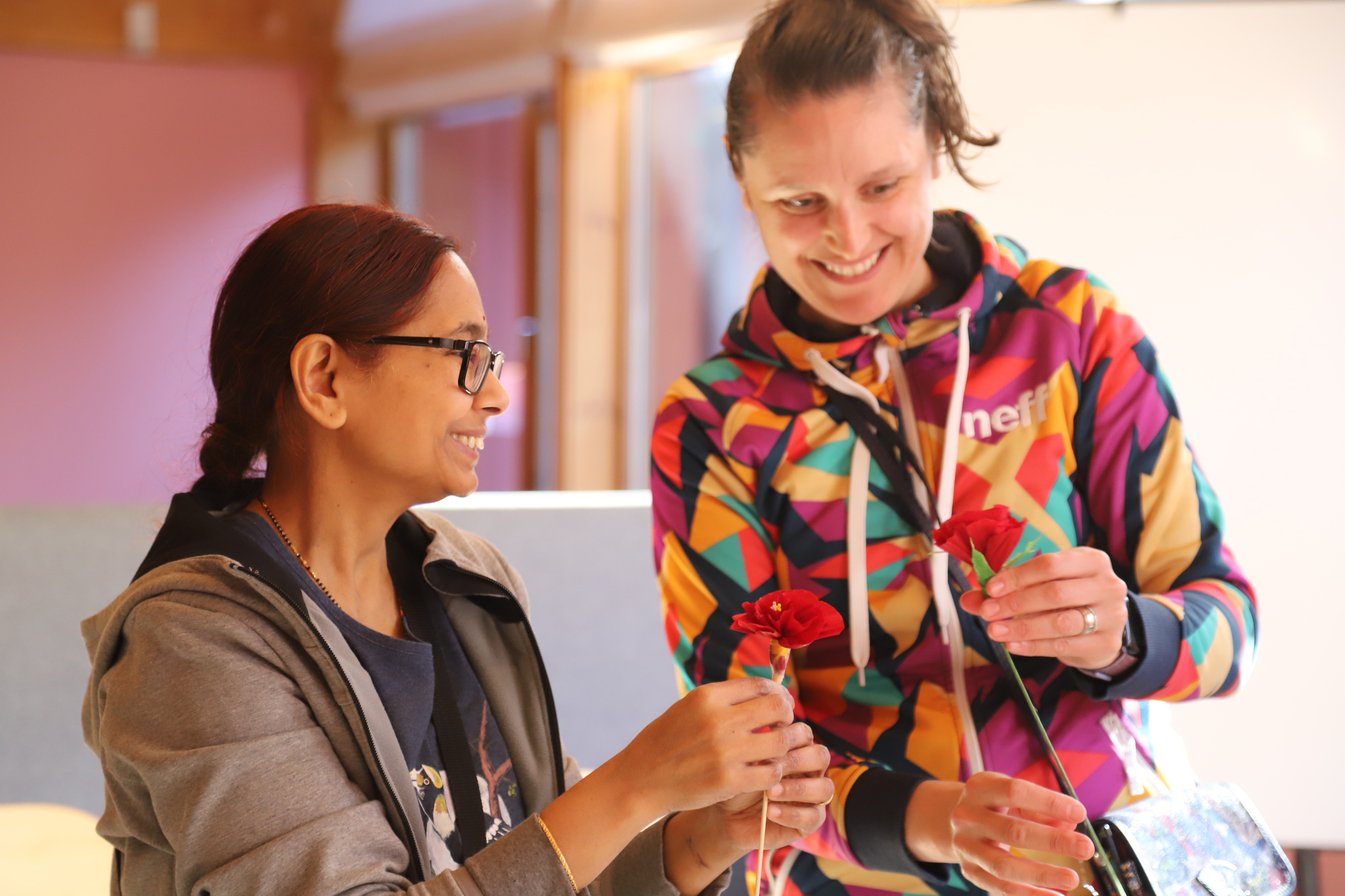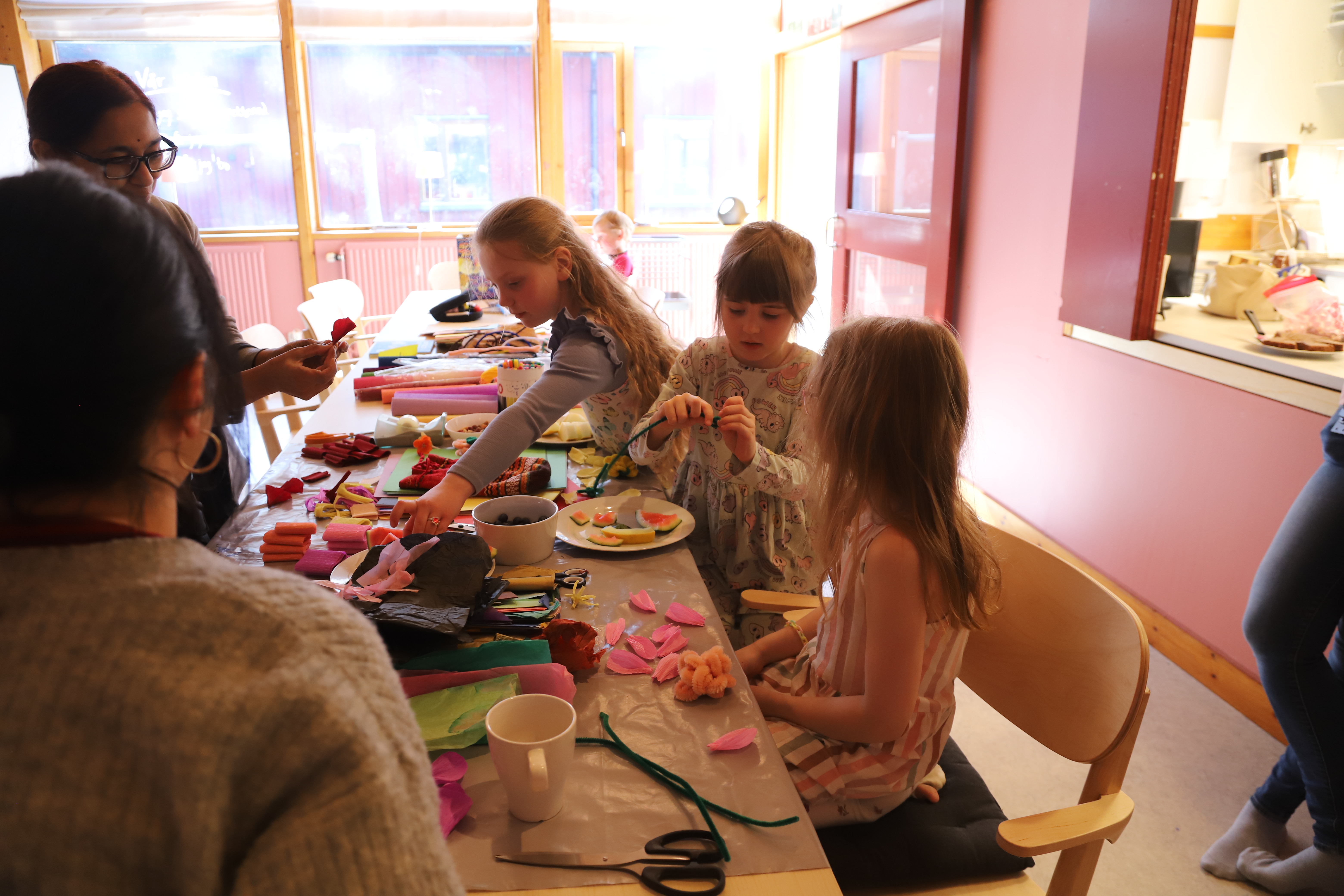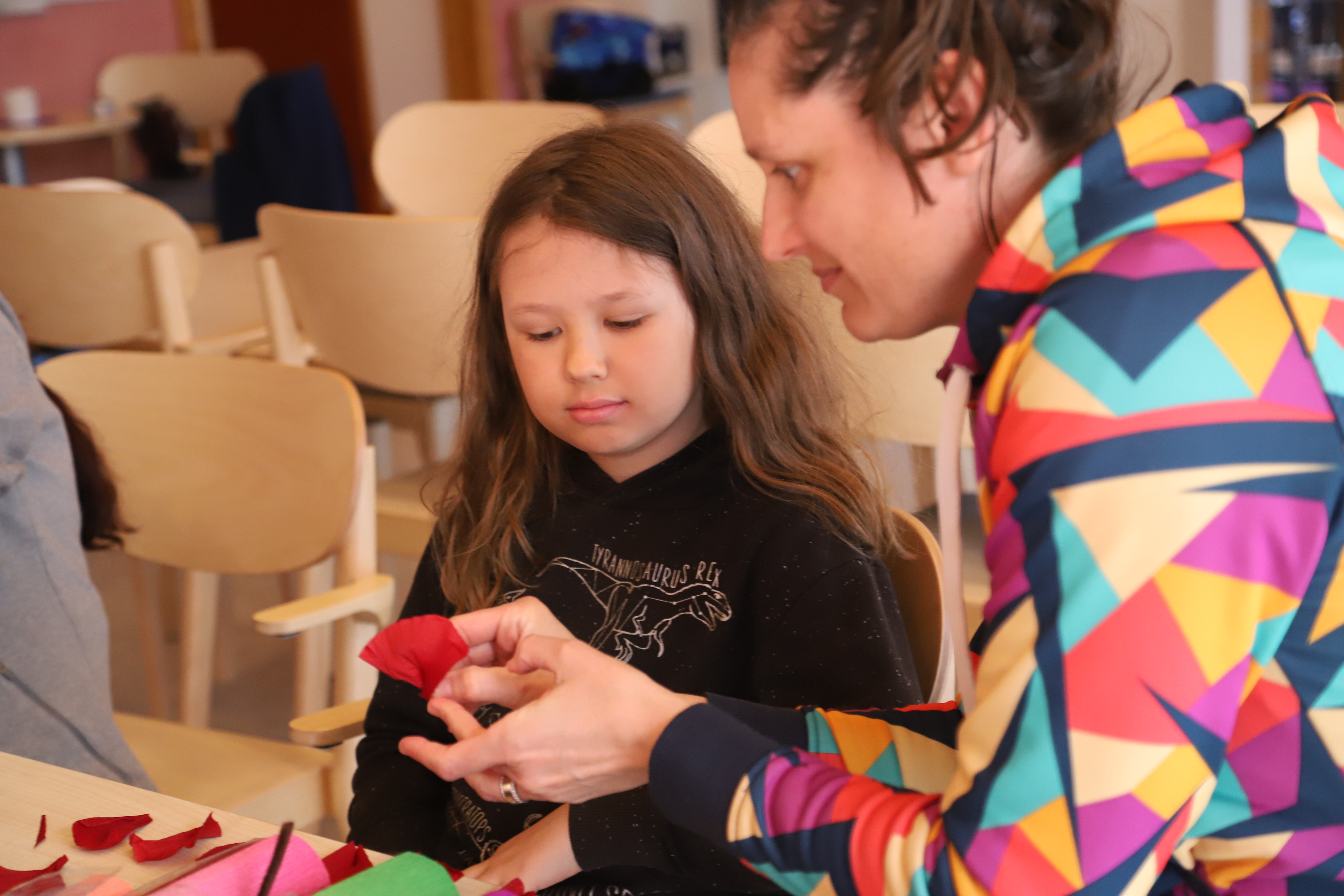 Na naszym dzisiejszym spotkaniu królowały kolory! Wiosna już za oknem, więc postanowiliśmy ją nieco przyspieszyć robiąc kolorowe kwiaty z papieru, z pomocą naszej specjalistki. Były też kolorowe zagadki i wiele zabaw.