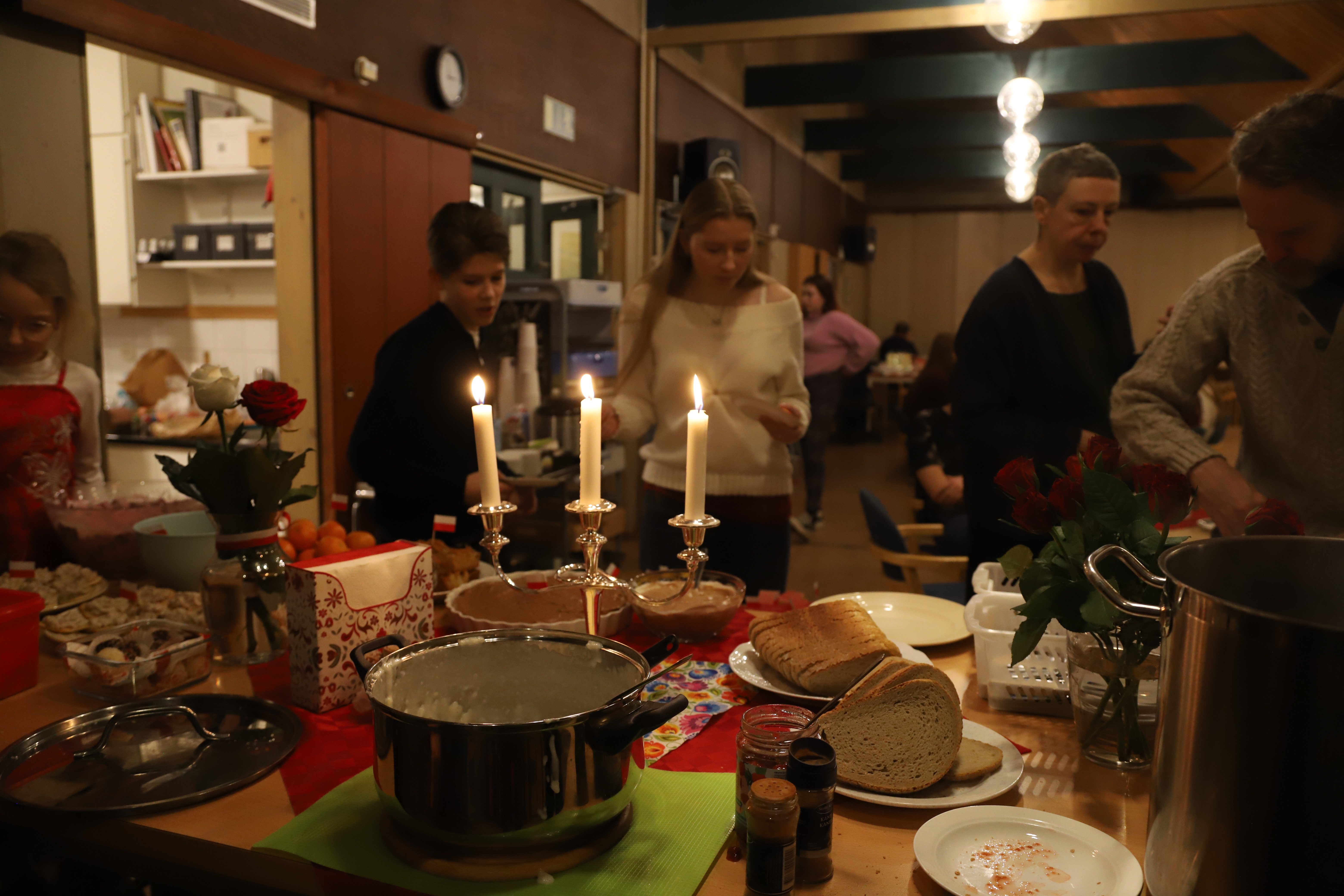 Tradycyjnie spotkaliśmy się dzisiaj świątecznie z bigosem, barszczem, sałatkami i ciastami. Dzieci i dorośli mogli wykonać różnorodne ozdoby świąteczne, pośpiewać kolędy no i oczywiście spotkać Mikołaja z ciężkim workiem prezentów. Gościem specjalnym naszego spotkania był Pan vice konsul Andrzej Jach.